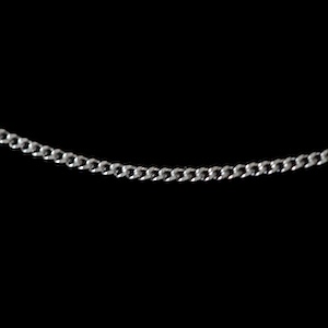 This Sterling Silver Extra-Light Curb Chain 035 gauge curb link provides a delicate yet durable construction ideal for pairing with small pendants or wearing alone as a minimalist chain. Crafted from high-quality sterling silver, its interlocking pattern lies flat against the skin for a sleek, comfortable fit.